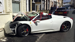 A British groom — with his bride riding shotgun — crashed a rented $342,000 Ferrari 458 Spider into his friend's home in Burnley, Lancashire after his foot slipped onto the throttle, according to The Daily Mail.