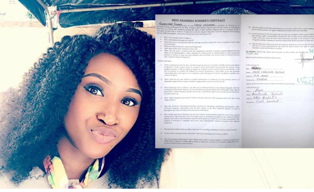 "Regarding the issue of the Miss Anambra vehicle, in line with clause 10 of the contract, the vehicle is an official car which the organisers reserve the right to withdraw at the end of the queen's reign. It does appear that the issue of the car is what concerns the former queen the most as statements to the media by her father, and even text messages to me and discussions from people from her camp suggest so but clearly as can be seen from the contract, the ABS acted as per contract signed.