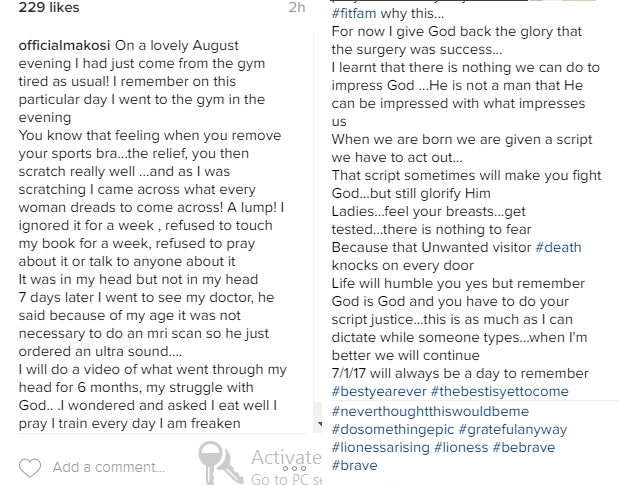 Big Brother UK contestant, 2005 and 2010 , Makosi Musambasi has revealed her battle with breast cancer, sharing a photo of her after surgery .