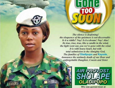 According to her sister Jolaade, the deceased had attempted joining the force several times without success until she was shortlisted to join the air force.