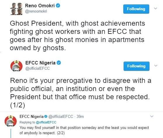 The former aide to ex-president Goodluck Jonathan yesterday took to his Twitter page to say that President Buhari is a 'Ghost President fighting ghost workers with an EFCC that goes after his Ghost monies in apartments owned by ghosts.'