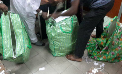 According to the EFCC, the money stashed in several bags popularly called ‘Ghana Must Go’ were in N500 and N1000 denominations, hidden in the shops and awaiting conversion into foreign currency.