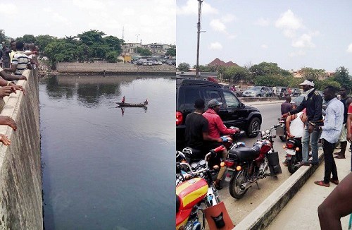 We earlier reported on Saturday, April 8, 2017, that an unidentified man reportedly jumped into the canal under the FESTAC link bridge in Lagos as efforts were still ongoing in a bid to rescue him from the canal by local divers.