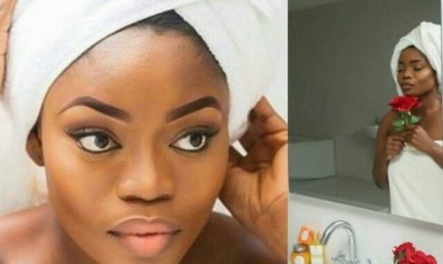 The reality star who modeled her radiant skin for CianaFresh skincare luxury brand, had a white towel wrapped around her body and another wrapped in a turban style around her head.