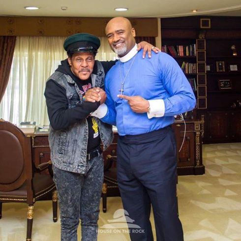 Nigerian dancehall artiste and 'send down the rain' crooner, Majek Fashek, who had to be sent to a rehab to get a hold on himself over drug addiction, really looked healthy as he worshipped with the General Overseer of House on the Rock, Pastor Paul Adefarasin, at the church's headquarters in Lagos recently.