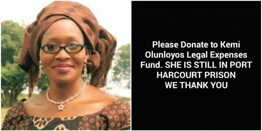 The handler who is now managing controversial journalist, Kemi Olunloyo's account, has begged fans to donate to her legal expenses, as she's still locked in Port Harcourt prison, following the defamation law suit against her.