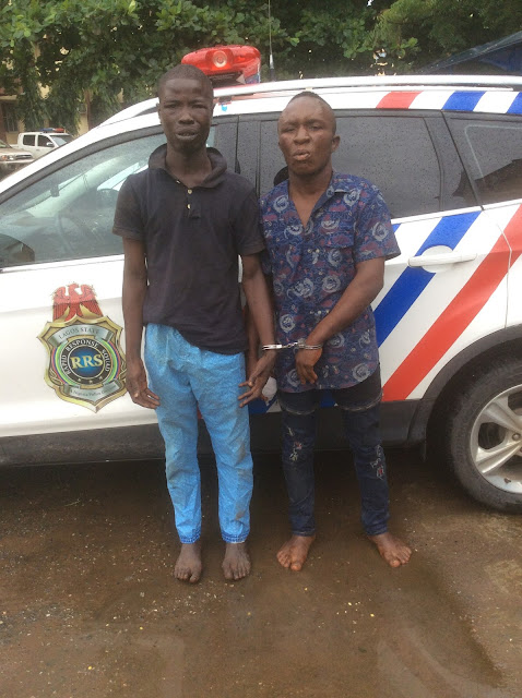 The operatives of the Rapid Response Squad (RRS) of the Lagos State Police Command have arrested two suspected robbers who specialise in attacking and robbing motorists and commuters in Mile 2 area of Lagos State.
