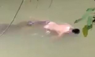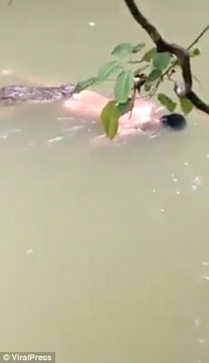 The crocodile floated to the river banks with the naked body of Syarifuddin in its jaws as the gathered crowd looked on.