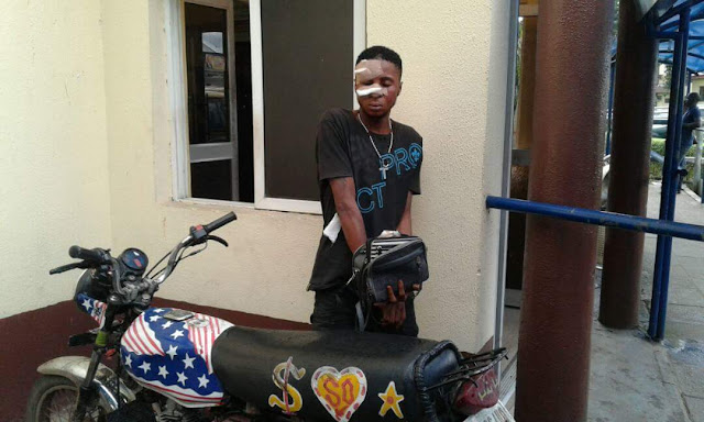 “But the man summoned courage and dragged one of them, Michael David, down from the motorcycle and with the help of passersby, the suspect was arrested and his gun taken away from him. The two other robbers escaped with the stolen property.”
