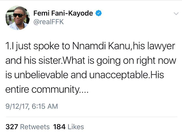He wrote: “I just spoke to Nnamdi Kanu, his lawyer and his sister. What is going on right now is unbelievable and unacceptable.
