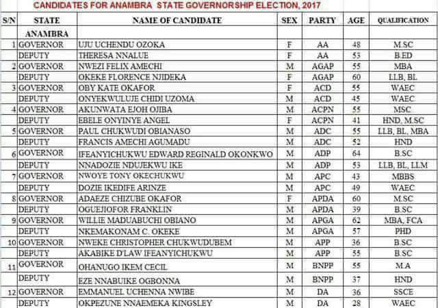 See Full List Of Candidates For 2017 Anambra Governorship Election
