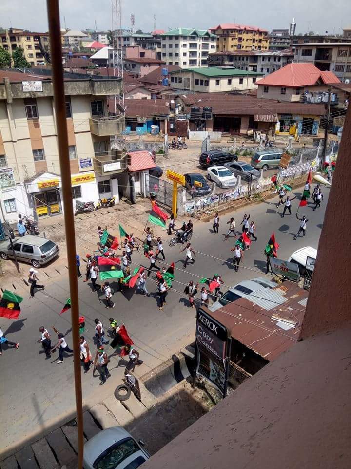 [PHOTOS] IPOB Members Storm Onitsha, Insist On Election Boycott