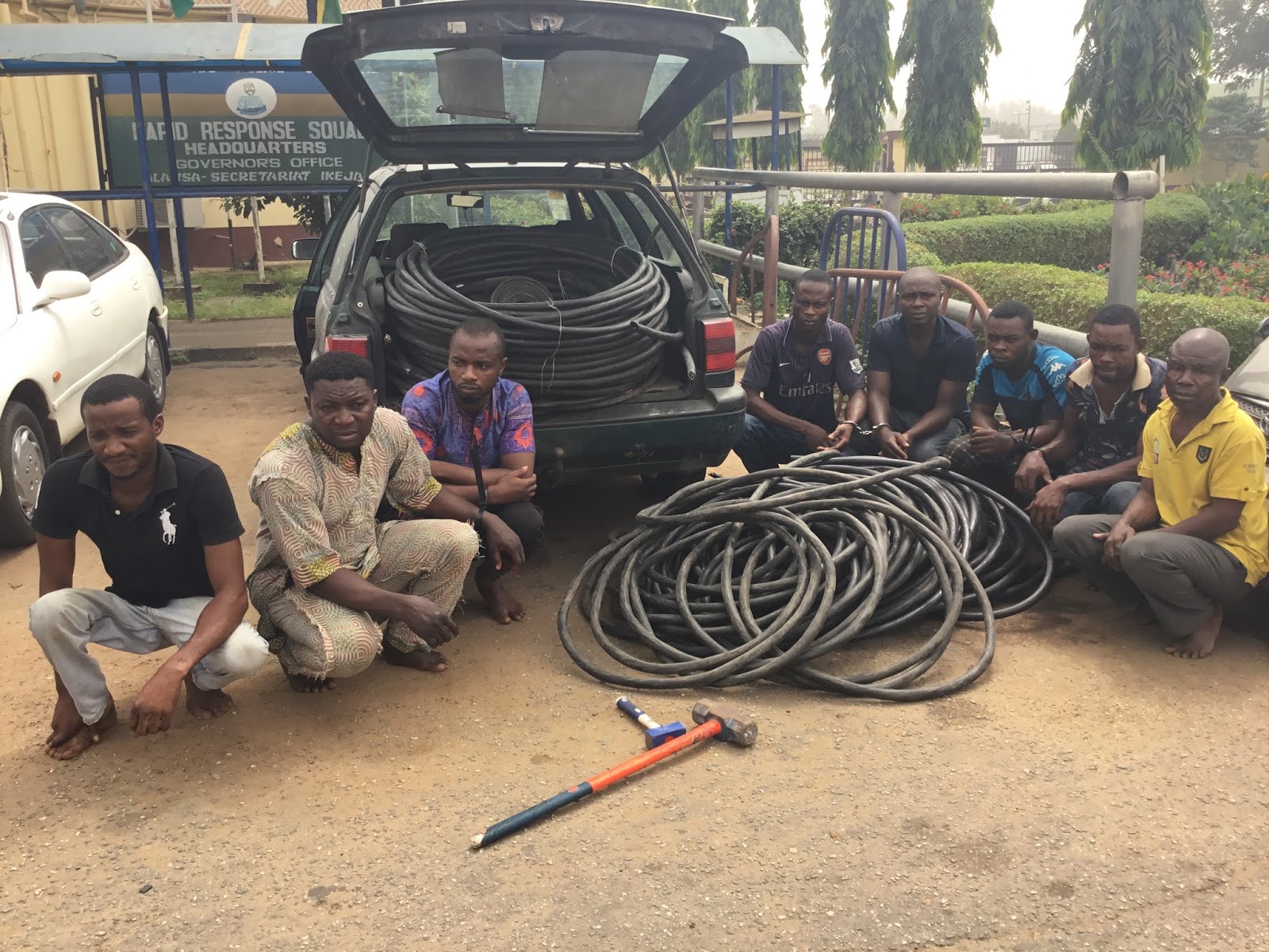 The operatives of Rapid Response Squad of the Lagos State Police Command have arrested eight serial cable thieves who specialise in vandalising government and private company’s cable in different parts of the metropolis, just as it recovered 168 meter long cable which the suspects stole at Third Mainland.
