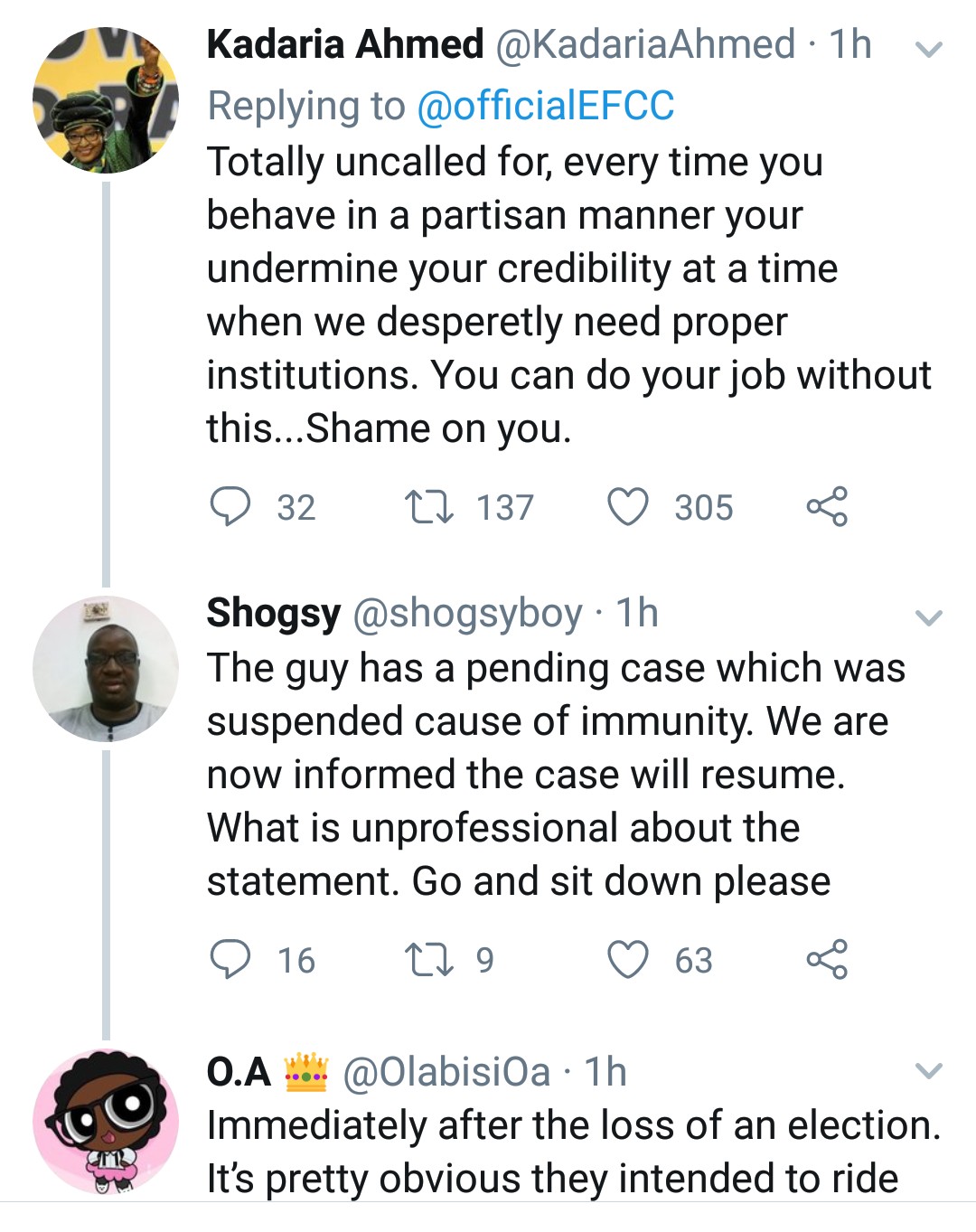 Though the anti graft agency didn't mention his name in a tweet made trough their official Twitter handle on Sunday, but the message was purely a signal to the embattled outgoing Governor who would lose his immunity immediately he hands over to the incoming Governor.