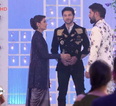 A woman tells them that they are made for each other and their love is seen in their dance. Everyone claps for them. Abhi comes to them and asks King, can I dance with your wife. King moves from their way. Abhi and Pragya go on the stage. She asks how are you in her heart…He looks at her. They dance together holding hands and get emotional. Sau Dard hai plays……She closes her eyes. They dance.